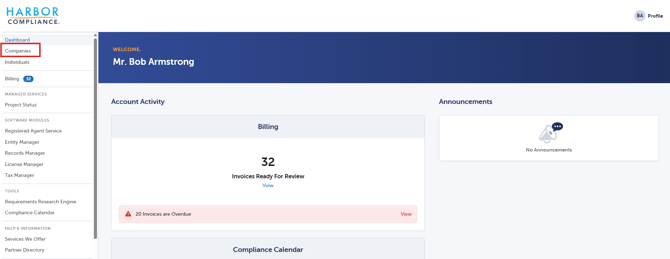 2. Select Companies from the left-side menu.