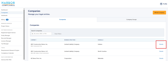3. Click Details next to the company you need the form for.
